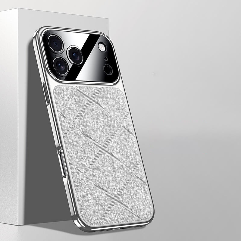 Sleek PC case with leather texture for a refined and comfortable grip.